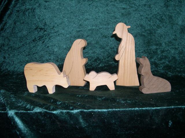 Hier sehen Sie die Grundfiguren der Krippe. Sie bekommen Maria, Josef und das Kind, sowie Ochs und Esel.