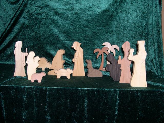 Die Krippe ist aus verschiedenen Holzarten gefertigt. Durch den entstehenden Kontrast wirkt sie natürlich und lebendig. Die Krippe besteht aus 13 Krippenfiguren. Die größte Krippenfigur ist ca. 20 cm hoch, alle sind ca. 2 cm. dick.