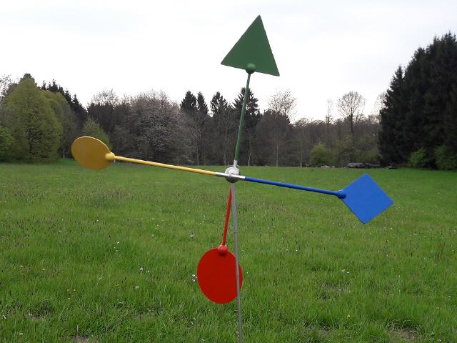 Windspiel mit 4 verschiedenen geometrischen Formen, die in verschiedenen Farbkombinationen erhältlich sind. Das Windspiel ist aus Holz, Gleitlager aus Edelstahl. Die Flügel des Windspiels drehen sich beim kleinsten Windhauch gegeneinander.Wir liefern das Windspiel mit einem Metall-Zwischenstück, das Sie in ein Edelstahlrohr oder Kupferrohr (aus dem Baumarkt) stecken können. Das Rohr sollte einen Innendurchmesser von 10mm haben. Dadurch können Sie die Höhe in der das Windspiel laufen soll, selbst festlegen.