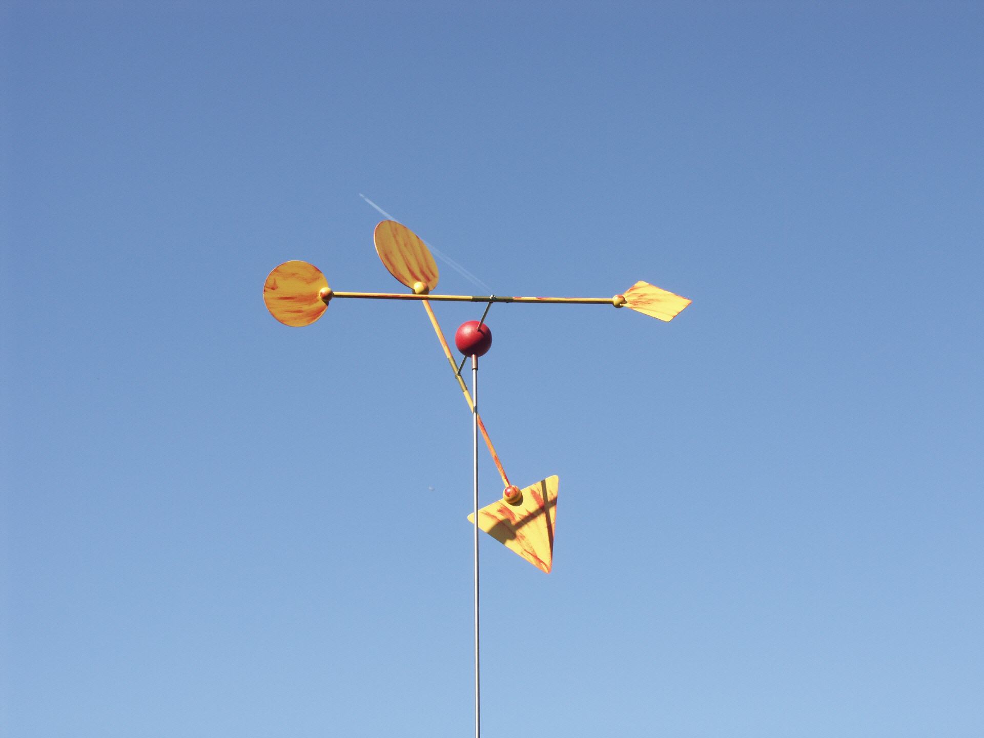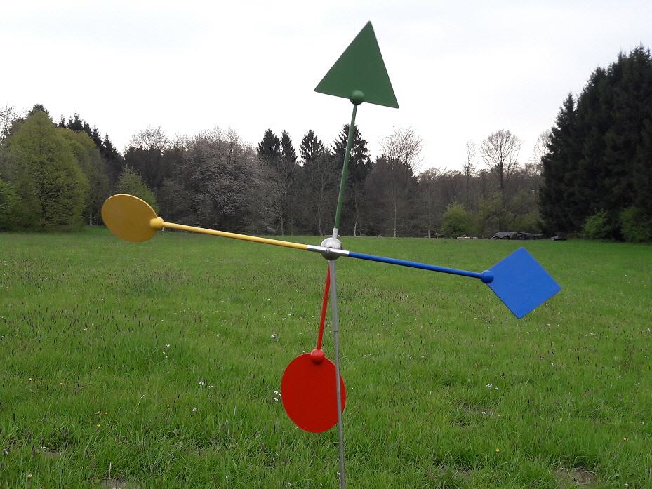 Da das Windspiel an mehreren Achsen läuft, benötigt es deutlich mehr Wind, als die Anderen.